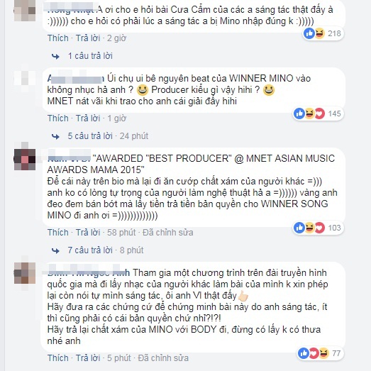Phẫn nộ khi thấy beat trong bài hát của thần tượng bị “đánh cắp”, người hâm mộ của nam ca sĩ Hàn Quốc – Mino đã yêu cầu một lời giải thích từ phía cha đẻ ca khúc “Cưa cẩm”.