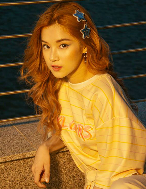 Hoàng Yến Chibi sử dụng kẹp tóc hình sao để tăng độ điệu cho mái tóc xoăn dài.