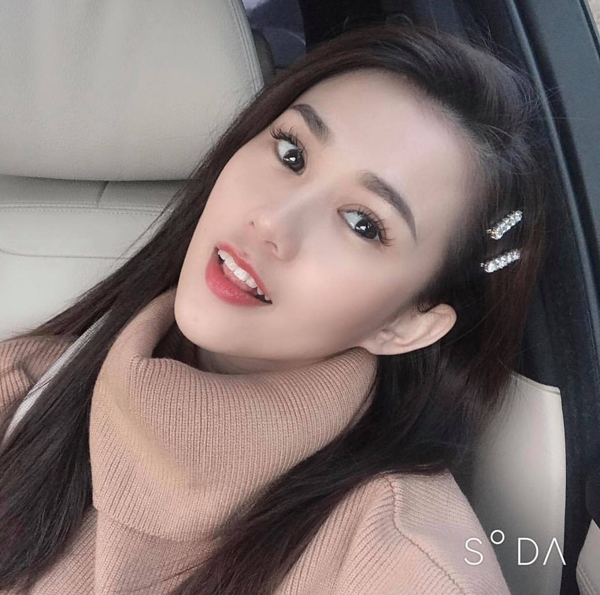 Thanh Hằng nữ tính khi dùng hai chiếc cặp tóc đính hạt.