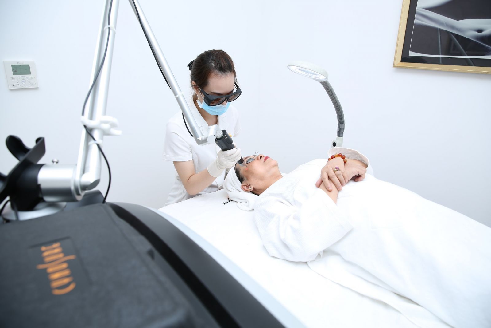 Phương pháp điều trị nám chân sâu được nhiều người lựa chọn nhiều nhất chính là điều trị bằng laser. Cơ chế điều trị nám bằng laser chính là sử dụng sóng laser chuyên biệt trực tiếp tác động vào chân nám, phá vỡ chúng thành những mảnh cực nhỏ, sau đó đào thải ra bên ngoài qua hệ bài tiết.