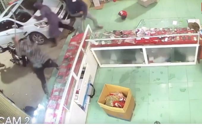 Vào thời điểm trên, có 6 đối tượng mặc áo chống nắng, đầu đội mũ bịt kín mặt đi trên 2 chiếc xe máy dừng đỗ trước cửa hàng điện thoại. Sau đó, 4 đối tượng cầm theo tuýp sắt, kiếm tự chế xông vào bên trong cửa hàng, 2 đối tượng còn lại ngồi trên 2 chiếc xe máy sẵn sàng chờ đồng bọn hành động xong rồi lên xe bỏ chạy.
