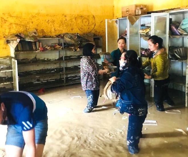 Do cơn lũ đến nhanh và bất ngờ khiến các thầy cô giáo không kịp di dời tài sản ra ngoài. Rất nhiều sách vở, giáo án cùng các tài liệu bị ngập trong bùn và nước lũ. Hiện tại nước lũ đang rút, người dân, chính quyền địa phương cùng các thầy cô đang tiến hành dọn dẹp bùn đất, bàn ghế nhưng vẫn không thể kịp cho các học sinh tựu trường.