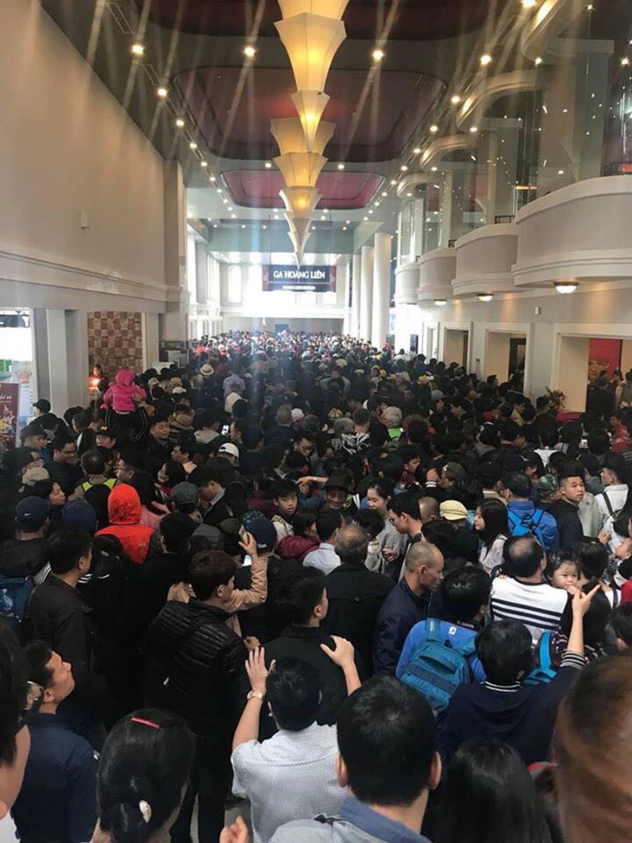 Hàng nghìn du khách đổ về ga cáp treo Sa Pa để lên tham quan nóc nhà Đông Dương khiến khu vực này nhanh chóng trở nên đông đúc. Càng về trưa, lượng khách càng đông. Hệ thống cáp treo có khả năng vận chuyển 2.000 người mỗi giờ cũng không đủ đáp ứng nhu cầu. Hành khách phải chờ đợi trên cả tiếng đồng hồ vẫn chưa đến lượt.