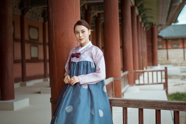Khi đến thăm cố cung Gyeongbok, nữ diễn viên diện hanbok, trang phục truyền thống của Hàn Quốc và tranh thủ thực hiện một bộ ảnh kỷ niệm.