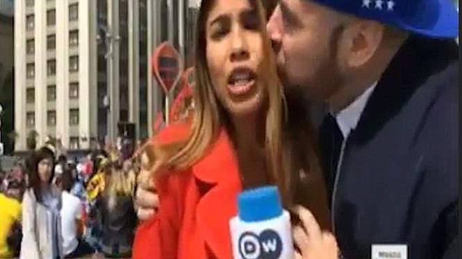 Quá bất ngờ, nữ phóng viên đứng hình mất vài giây rồi nhìn về phía người vừa sàm sỡ mình. Tuy nhiên ý thức được bản thân đang dẫn sóng truyền hình nên cô nhanh chóng lấy lại bình tĩnh và tiếp tục đưa tin về sự kiện.