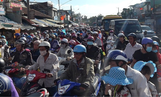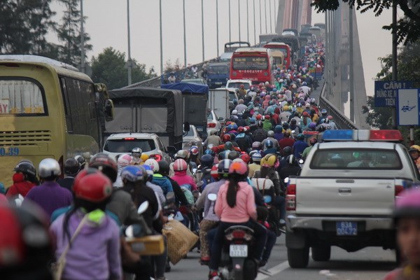 Khoảng 15h, trạm BOT cầu Rạch Miễu ngừng thu phí đề phòng ùn tắc. Tuy nhiên, hàng nghìn người dân từ các tỉnh miền Tây ùn ùn trở về TP HCM làm việc sau Tết gây kẹt xe gần 5 km trên quốc lộ 60 hướng Bến Tre đi Tiền Giang.