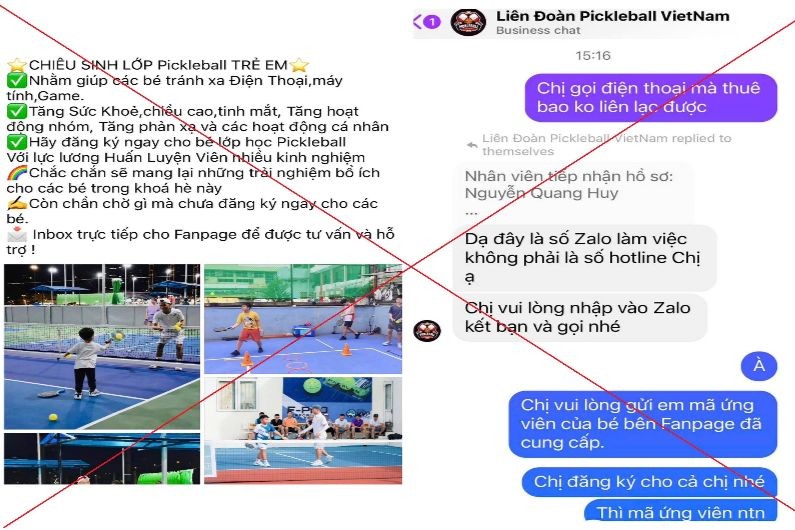 Công an TP.Hà Nội cho biết thời gian gần đây, Pickleball đang là môn thể thao có sức hút, tạo nên trào lưu tại tại Việt Nam. Đây là môn thể thao mới nhưng đã có sự phát triển rất nhanh và thu hút nhiều người tham gia để rèn luyện sức khỏe. Lợi dụng điều này, một số đối tượng đã lập Fanpage "Liên đoàn Pickleball Việt Nam" giả mạo để tìm cách lừa đảo chiếm đoạt tài sản người đăng ký học.