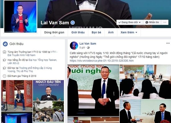 Trên trang cá nhân mới tạo lập, nhà báo Lại Văn Sâm cũng chưa chia sẻ nhiều. Ông chủ yếu đăng tải hình ảnh của mình khi tham gia các chương trình truyền hình.