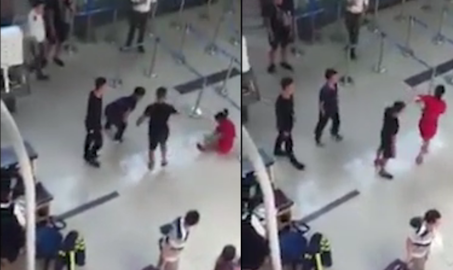 Khi được nhân viên kiểm soát an ninh nhắc nhở, nam hành khách to tiếng chửi bới, thách thức thậm chí ôm cổ rồi vật ngã một nhân viên an ninh.