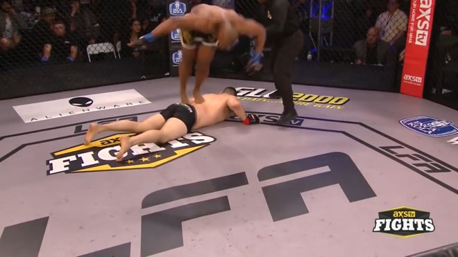 Thế nhưng, chuyện lạ chưa dừng lại ở đó. Vì quá vui mừng với chiến thắng bất ngờ, võ sĩ Drew Chatman đã nhảy lên lưng đối thủ và thực hiện màn lộn vòng. Điều này đã khiến cho Drew Chatman bị xử thua vì đã thực hiện hành vi phi thể thao.