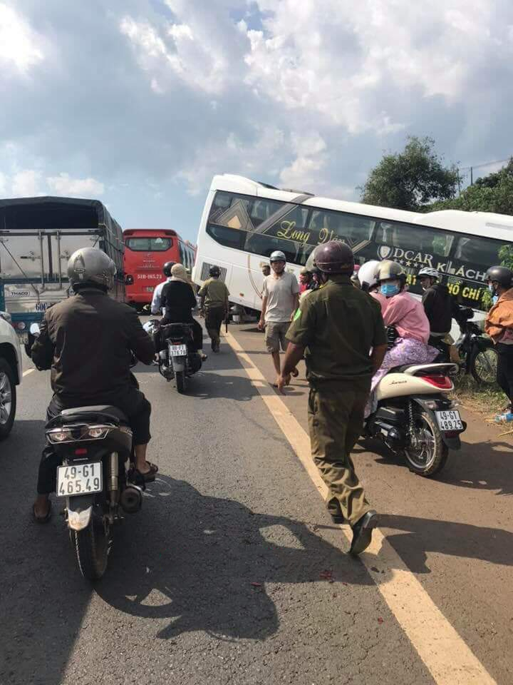 Cùng lúc này, xe khách giường nằm BKS: 47D - 025.47 đang lưu thông theo hướng TP.Đà Lạt - TP.HCM. Khi đi đến khu vực trên, do phát hiện muộn việc ô tô 7 chỗ và nhiều người đang tập trung trên đường, nên tài xế xe khách đã đánh lái tránh. Do đó, chiếc xe khách lao khỏi mặt đường và lật xuống khe nước. May mắn những người trên xe khách không bị thương.