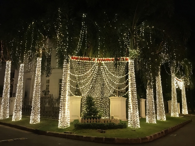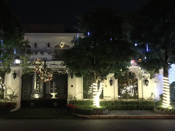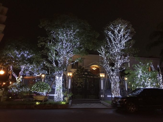 Chỉ chăng đèn trắng trên hệ thống cây ngoài cửa, ngôi biệt thự ở khu Garden Plaza cũng đủ gây ấn tượng cho người đi đường.