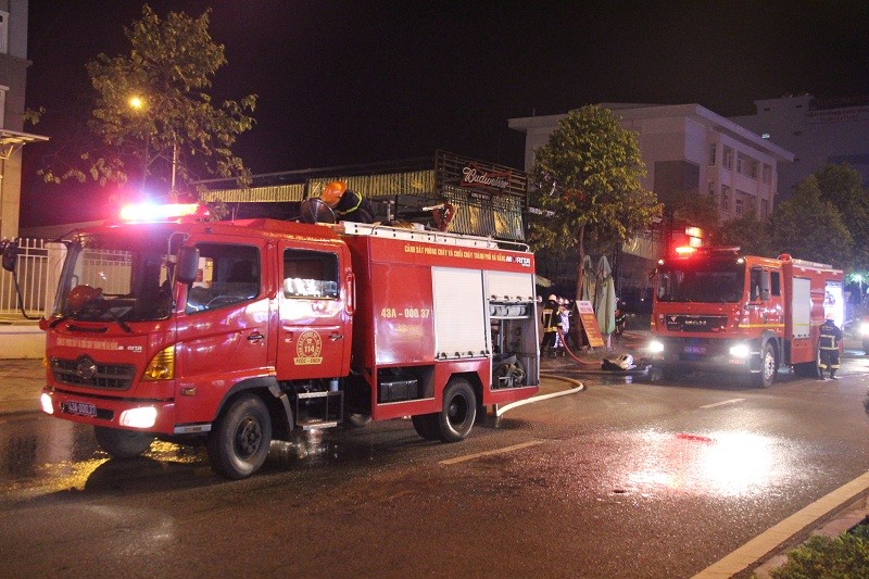 Nhận được tin báo, lực lượng PCCC Công an TP.Đà Nẵng đã nhanh chóng có mặt tại hiện trường, điều động 4 xe chữa cháy chuyên dụng cùng hàng chục chiến sĩ triển khai dập lửa. Đặc biệt, cơ quan cứu hộ phải làm mát hàng loạt bình gas đang chứa tại quán, đảm bảo an toàn. Cạnh đó, nhiều bình ga đã bị cháy xém, đen xì.