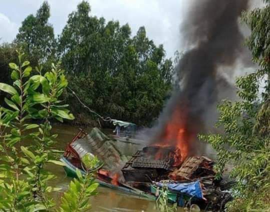 Sau tiếng nổ, ngọn lửa bùng cháy dữ dội. Thời điểm xảy ra vụ nổ, trên phà có 5 người bị rơi xuống kênh. Trong đó có 1 người mất tích và 4 người bơi được vào bờ, 2 người bị thương khá nặng và được đưa đến bệnh viện cấp cứu.