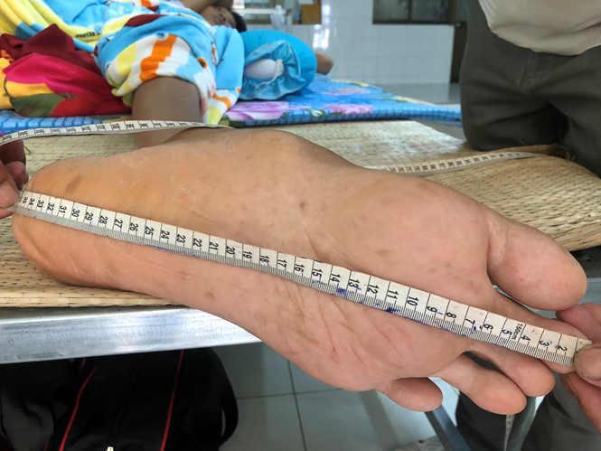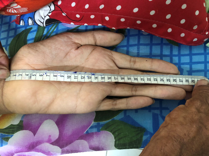 Ngoài ra, nam thanh niên này còn sở hữu bàn chân và đôi tay khổng lồ. Chính vì vậy, dép ở cửa hàng bán không đôi nào anh mang vừa.