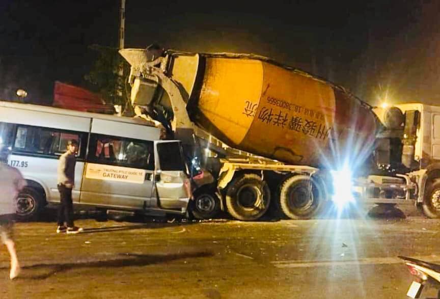 Vào thời điểm trên, xe bồn trộn bê tông đang dừng đèn đỏ trên quốc lộ 5 kéo dài (thuộc địa bàn huyện Đông Anh) thì bất ngờ chiếc xe 16 chỗ dán logo trường phổ thông liên cấp quốc tế Gateway lưu thông cùng chiều đâm vào đuôi xe.
