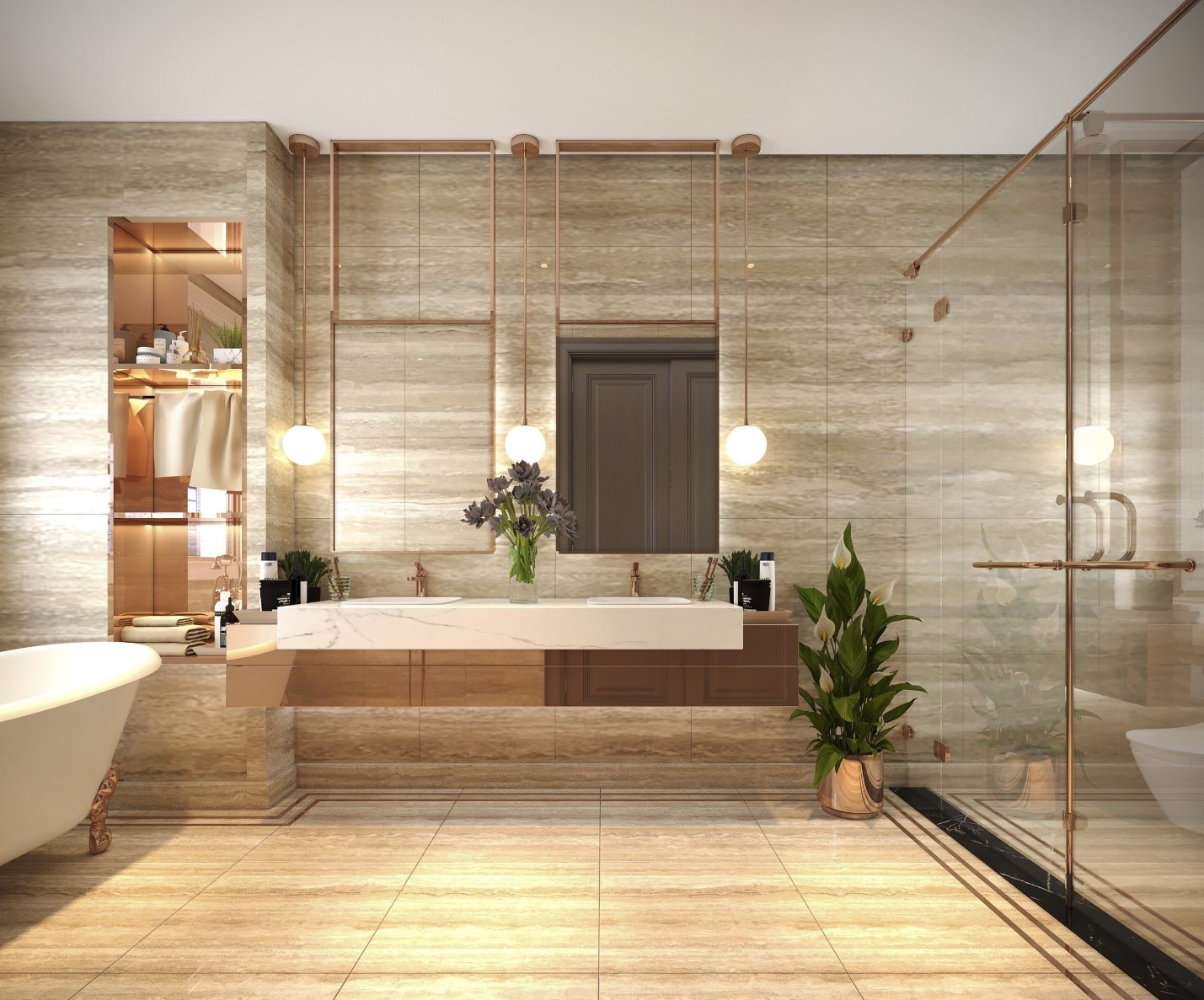 Điểm nhấn tinh tế sang trọng của dự án chính là việc sử dụng Marble Travertine nhập khẩu nguyên phiến từ Italy ốp toàn bộ mặt ngoài tòa nhà, mang đến sự chắc chắn và gây ấn tượng mạnh mẽ với bất kì ai ghé thăm. Hệ thống cửa kính cũng được lựa chọn loại kính 2 lớp mạ vàng 24k, mặt ngoài kính phủ Low – E mềm 2 lớp giúp cân bằng lượng nhiệt, phân phối ánh sáng đều toàn khu nhà, mang lại sự thẩm mỹ, tiết kiệm điện năng sử dụng, hệ cửa trệt và lan can cũng được lựa chọn loại nhôm đúc mỹ thuật theo phong cách hoàng gia.
