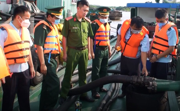 Kiểm tra 2 tàu số hiệu SG9231, SG3190 và một xà lan chứa dầu tại khu vực sông Sài Gòn (phường Phú Thuận, Quận 7) của Công ty TNHH Thương mại vận tải xăng dầu Phúc Thọ, lực lượng chức năng ghi nhận hàng hóa chứa trên các phương tiện trên là gần 500 tấn dầu FO và DO.