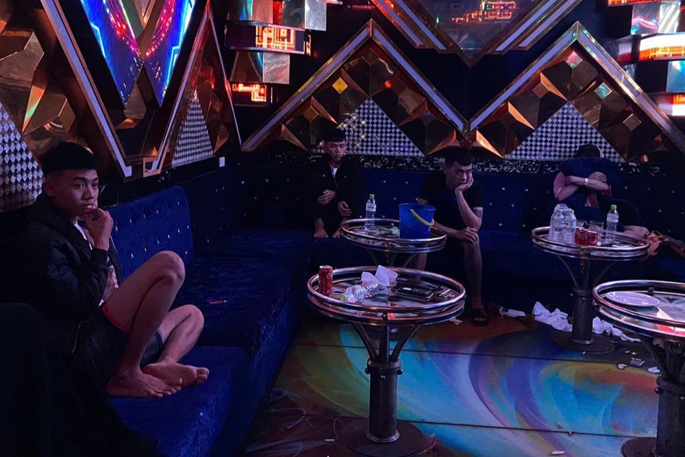 Tiếp đó, lực lượng Công an phát hiện 11 khách (7 nam, 4 nữ) đang vào chuẩn bị thuê phòng để hát có biểu hiện nghi vấn, tiến hành kiểm tra phát hiện trên người 1 đối tượng trong nhóm có 1 túi nilon, bên trong có 5 viên nén màu xanh khối lượng 2,32 gam nghi là ma tuý tổng hợp. Qua test nhanh có 3/11 đối tượng dương tính với chất ma tuý.