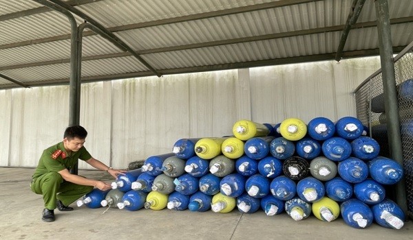 Thông tin trên Pháp luật Plus, căn cứ lời khai của các đối tượng, Công an TX.Đông Triều phối hợp với Công TP.Bắc Ninh, tỉnh Bắc Ninh tiến hành khám xét kho chứa hàng tại khu Xuân Ổ B, phường Võ Cường, TP.Bắc Ninh phát hiện và thu giữ 484 bình khí nén bằng kim loại, bên trong nghi chứa khí cười (khí N2O) không có hóa đơn chứng từ.