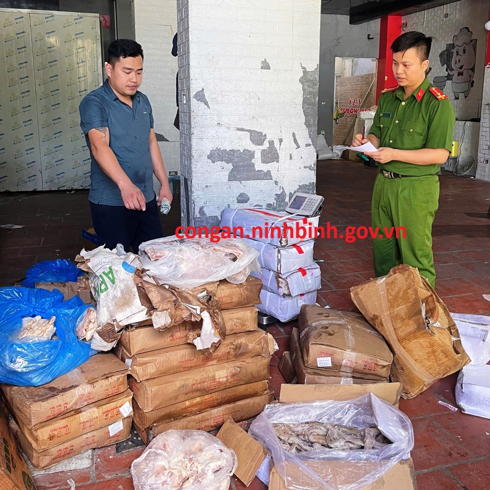 Theo Công an tỉnh Ninh Bình, ngày 2/6, Tổ công tác của Phòng Cảnh sát kinh tế Công an tỉnh chủ trì phối hợp với Đội Quản lý thị trường số 2 thuộc Cục Quản lý thị trường tỉnh Ninh Bình và Công an phường Trung Sơn, thành phố Tam Điệp phát hiện xe mô tô BKS 35N1-345.28 do Lê Minh Trí (SN 2001, trú tại Tổ dân phố Quan Đồng, phường Ninh Mỹ, thành phố Hoa Lư) đang dừng, đỗ bốc xếp hàng hoá là thực phẩm đông lạnh tại Kho đông lạnh có địa chỉ ở số 97, đường Lê Trọng Tấn thuộc địa bàn Tổ 1, phường Trung Sơn, thành phố Tam Điệp có biểu hiện nghi vấn nên đã tiến hành kiểm tra theo quy định.