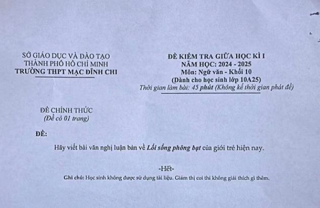 Một trường học ở thành phố Hồ Chí Minh vừa có cái đề kiểm tra về... phông bạt gây xôn xao dư luận.