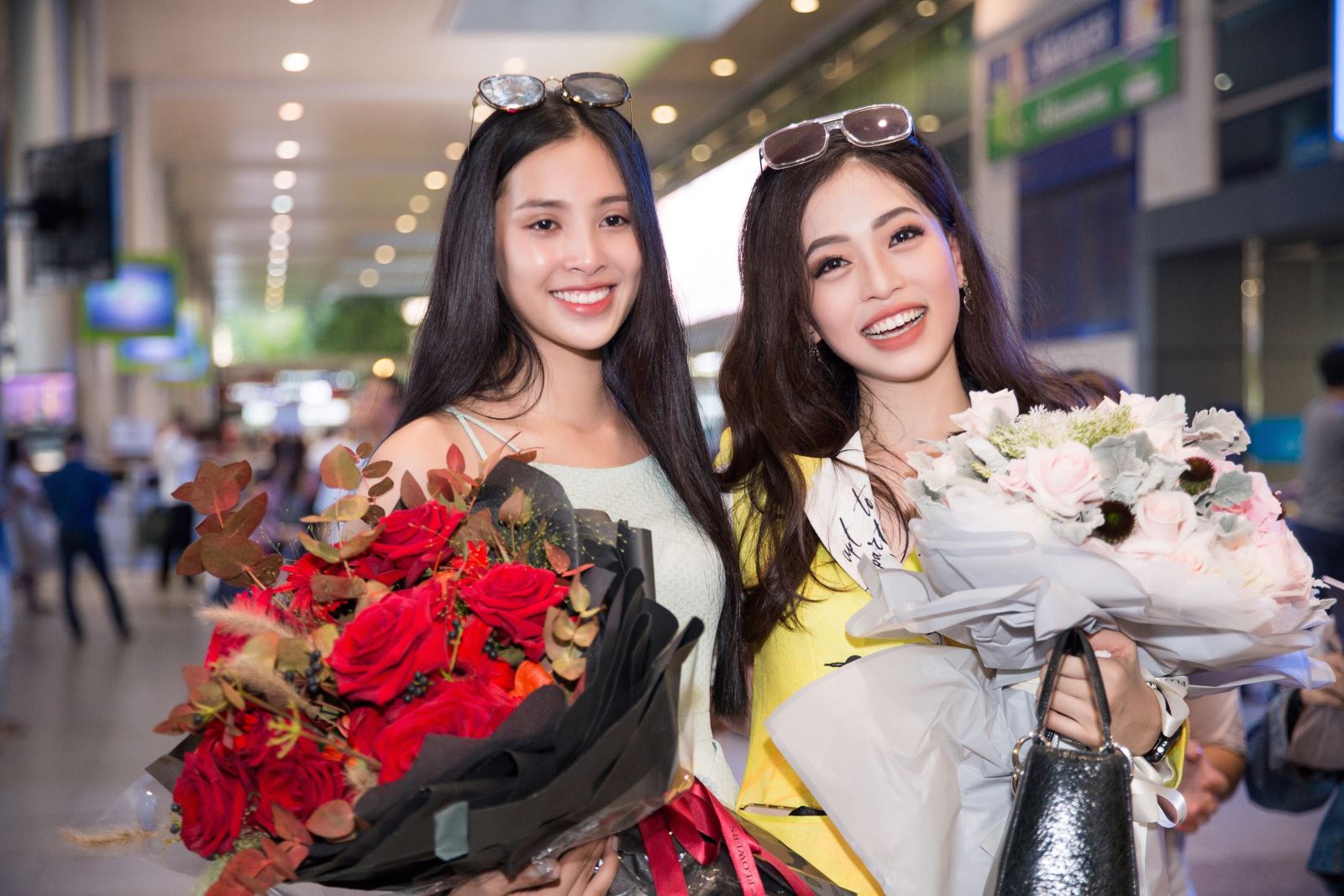 Hoa hậu Tiểu Vy vừa kết thúc buổi học của mình, cô đã nhanh chóng ra tận sân bay để chúc mừng người chị thân thiết. Dù để mặt mộc và gấp rút di chuyển nhưng Tiểu Vy không quên chuẩn bị một bó hoa tươi thắm dành tặng cho Phương Nga. Trước tình cảm của Tiểu Vy và người hâm mộ, Phương Nga không khỏi bất ngờ và xúc động.