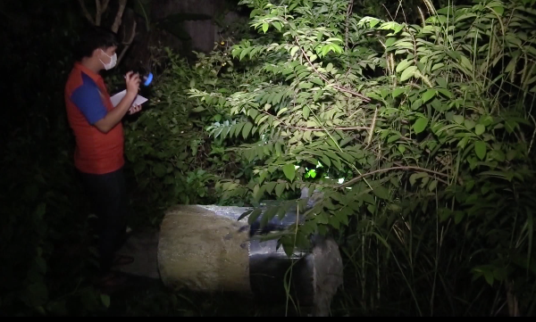 Khi một phần bê tông bể ra, ông H. thấy có vải quần áo bên trong, sau đó thì lộ ra cơ thể người. Lúc này, ông H. hoảng hốt trình báo cơ quan chức năng.
