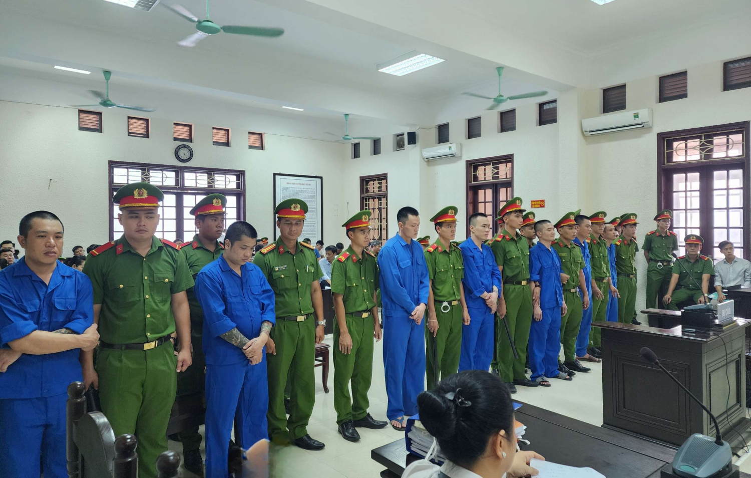 Toàn tuyên án Sơn, Định, Thịnh đều án tử hình về tội Vận chuyển trái phép chất ma túy. Tuyên án Cường 2 năm tù tội Bắt giữ người trái pháp luật; 6 năm tù tội Tàng trữ trái phép chất ma túy; 7 năm tội Tổ chức sử dụng trái phép chất ma túy. Tuyên án Mạnh 2 năm tù tội Bắt giữ người trái pháp luật; 7 năm tù tội Cưỡng đoạt tài sản. Tuyên phạt Thái 5 năm tù và Thanh 7 năm tù đều về tội Cưỡng đoạt tài sản. Tuyên phạt bị cáo Lệ 200 triệu đồng tội cho vay lãi nặng trong giao dịch dân sự.