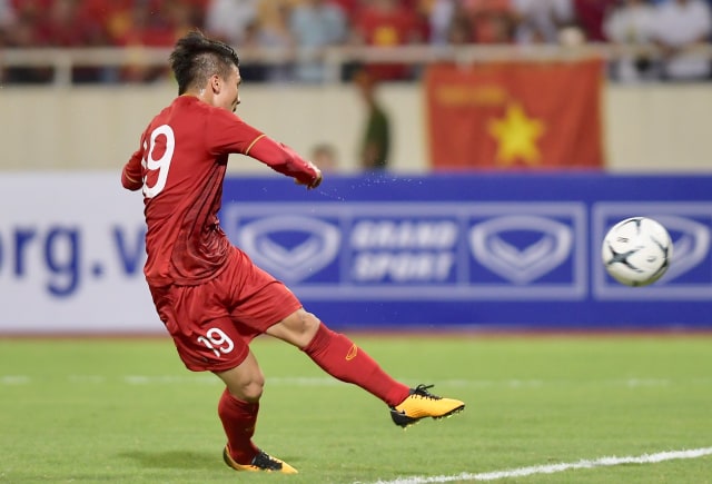 Phút 63, lão tướng Anh Đức vào sân thay cho Công Phượng. Phút 76, chính Anh Đức có cơ hội nhân đôi cách biệt cho tuyển Việt Nam, từ pha dàn xếp tấn công hay bên cánh phải. Trọng Hoàng bứt tốc xâm nhập vòng cấm đón đường chọc khe của Đức Huy rồi thực hiện đường chuyền ngược lại cho đồng đội.