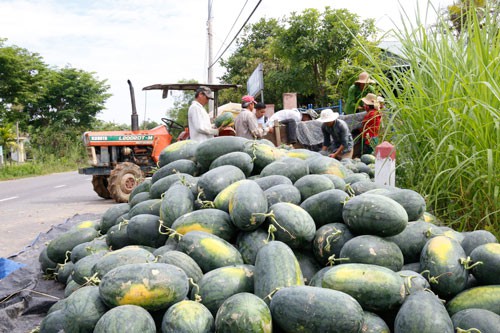 Theo Phòng NN-PTNT huyện Bình Sơn, tỉnh Quảng Ngãi, huyện có khoảng 56 ha dưa hấu đang thu hoạch, giá bán rất thấp, chỉ 1.500-2.000 đồng/kg. Hiện lượng dưa hấu tồn đọng hơn 1.100 tấn.