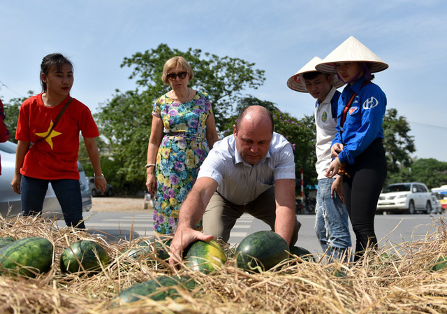 Biết thông tin nông dân trồng dưa hấu ở Bình Sơn (Quảng Ngãi) đang khó khăn trong khâu tiêu thụ, một nhóm sinh viên Hà Nội đã lên kế hoạch vận chuyển dưa ra Thủ đô để bán trên đường phố dưới hình thức kêu gọi "vừa mua vừa ủng hộ".