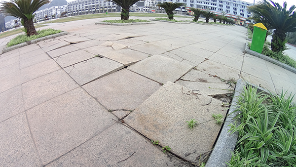 Ghi nhận tại quảng trường 30/10, đoạn mặt đường bao quanh quảng trường nham nhở những vết nứt, sụt lún kéo dài. Nền đá bị vỡ nát, đường đi chỗ cao chỗ thấp rất nguy hiểm, những cột điện bị mất nắp, hở hệ thống dây điện bên trong gây nguy hiểm cho người dân nếu bị rò rỉ điện.