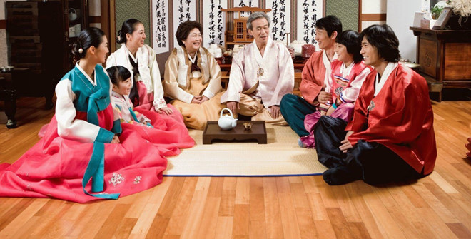Người Hàn Quốc thường mặc Hanbok vào buổi sáng đầu tiên của năm mới. Họ tổ chức nghi lễ tưởng nhớ tổ tiên, sau đó là ăn món Dduk Gook - loại súp làm bằng gạo. Năm mới cũng là ngày lễ lớn nhất ở Hàn Quốc nên người dân xứ sở kim chi thường dành dịp này cho gia đình và người thân.