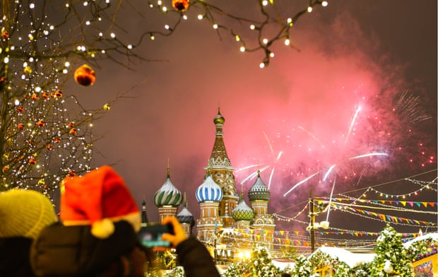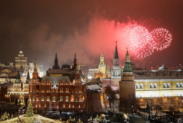 Pháo hoa được bắn trên Quảng trường Đỏ Moscow Matxcơva trong lễ đón giao thừa. (Ảnh: Marina Lystseva / TASS)