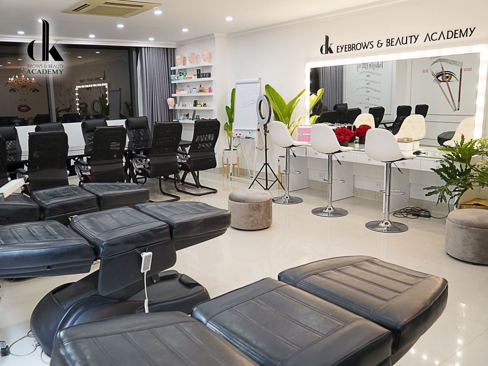 Đến với Học viện phun xăm thẩm mỹ DK Eyebrows & Beauty, học viên được học trong môi trường đào tạo chuyên nghiệp, đội ngũ giảng viên giỏi, uy tín, kinh nghiệm sử dụng giáo trình quốc tế thường xuyên cập nhật xu hướng làm đẹp của thế giới, cơ sở vật chất trang thiết bị hiện đại. Mô hình học chuẩn quốc tế: 5 ngày học lý thuyết, 6 tháng thực hành, hỗ trợ online trọn đời. Thời gian học chủ động – linh hoạt và học viên được trực tiếp xem chuyên gia thực hiện các thao tác phun xăm trên khách hàng, trực tiếp thực hành trên mẫu thật. Đây cũng là một trong những bí quyết giúp bạn từng bước chinh phục thành công trên con đường khởi nghiệp tương lai.