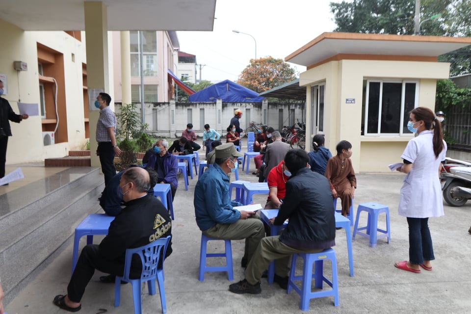 Tại đây, người dân được cán bộ y tế hướng dẫn điền tờ khai thông tin, xếp hàng đảm bảo giãn cách, đeo khẩu trang, khử khuẩn và tiến hành lấy mẫu theo quy định.