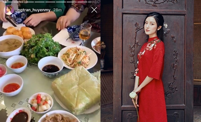 Huyền My khoe mâm cơm mùng 1 Tết bên gia đình đầy ấm áp. (Ảnh: Instagram)