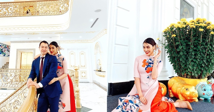Lan Khuê diện áo dài rực rỡ như nàng thơ bên ông xã doanh nhân trong ngày mùng 1 Tết. Người đẹp khoe nhan sắc viên mãn đáng ngưỡng mộ. (Ảnh: Instagram)