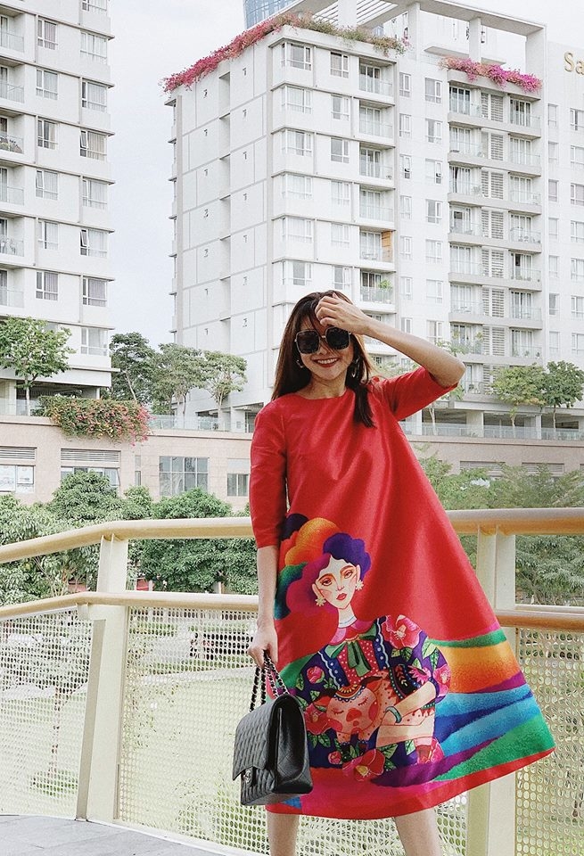 Thanh Hằng khoe ảnh dạo phố đầu năm đón nắng xuân, người đẹp diện váy đỏ đậm chất Tết khoe nhan sắc rạng rỡ. (Ảnh: FBNV)