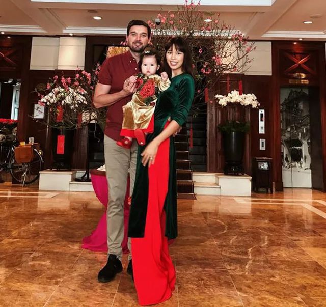 Hà Anh đưa con gái và ông xã ngoại quốc về Hà Nội đón Tết với gia đình.