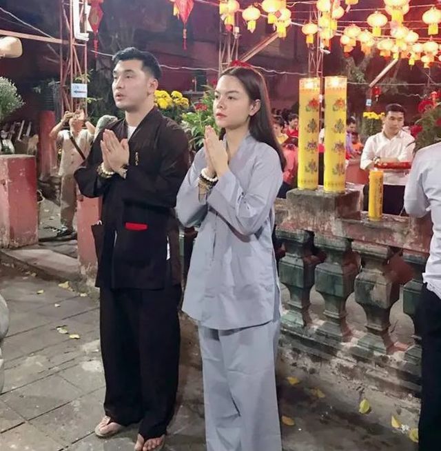 Ưng Hoàng Phúc và Phạm Quỳnh Anh thành tâm cầu nguyện.