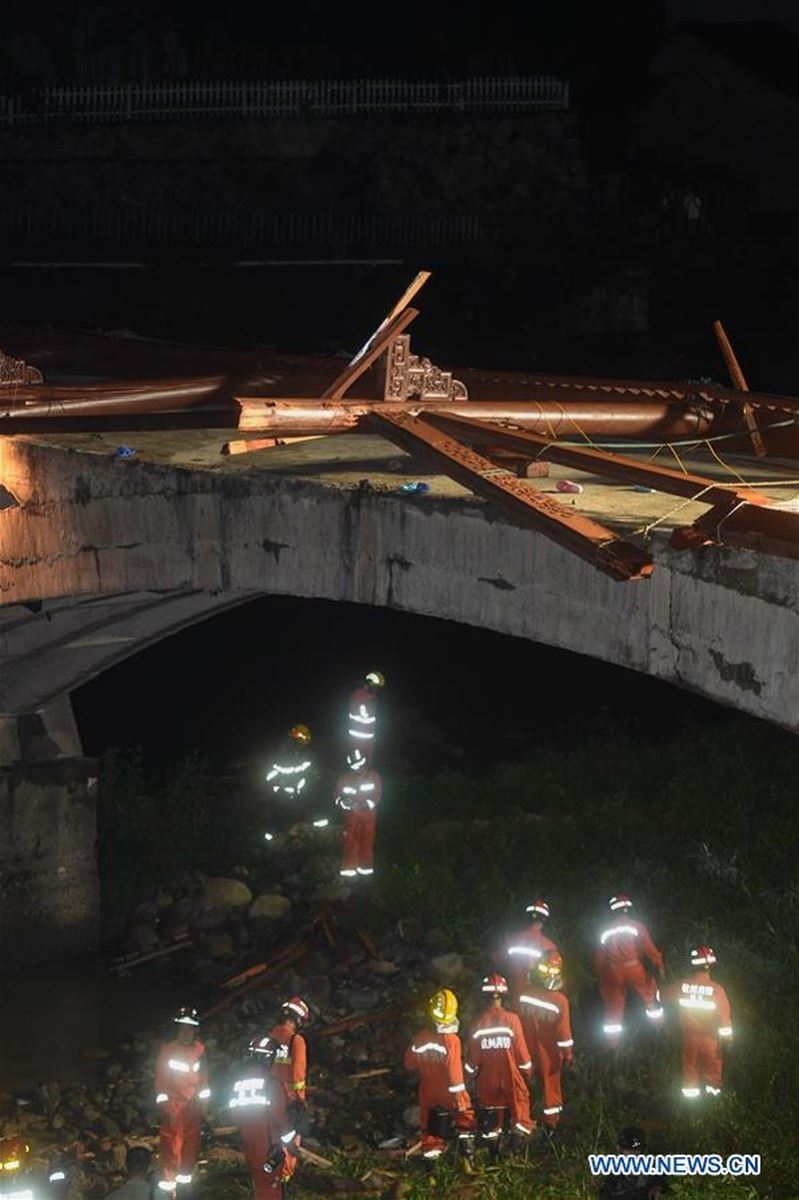 8 người chết và 3 người bị thương khi phần đầu một cây cầu ở huyện Đồng Lư, TP.Hàng Châu, tỉnh Chiết Giang (Trung Quốc) đổ sập lúc 7h40 tối 27/7, Tân Hoa xã dẫn thông tin từ quan chức chính quyền địa phương.