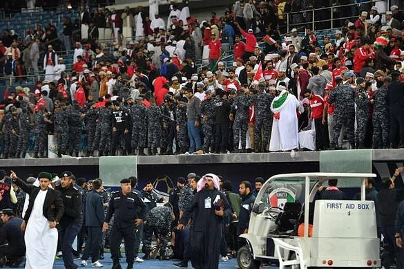 Trên tài khoản Twitter, của Liên đoàn Bóng đá Kuwait cho biết có khoảng 40 CĐV bị thương tại sân vận động Sheikh Jaber al-Ahmad thuộc Kuwait City sau khi một rào chắn bằng gương của khán đài đổ sụp, vỡ vụn.