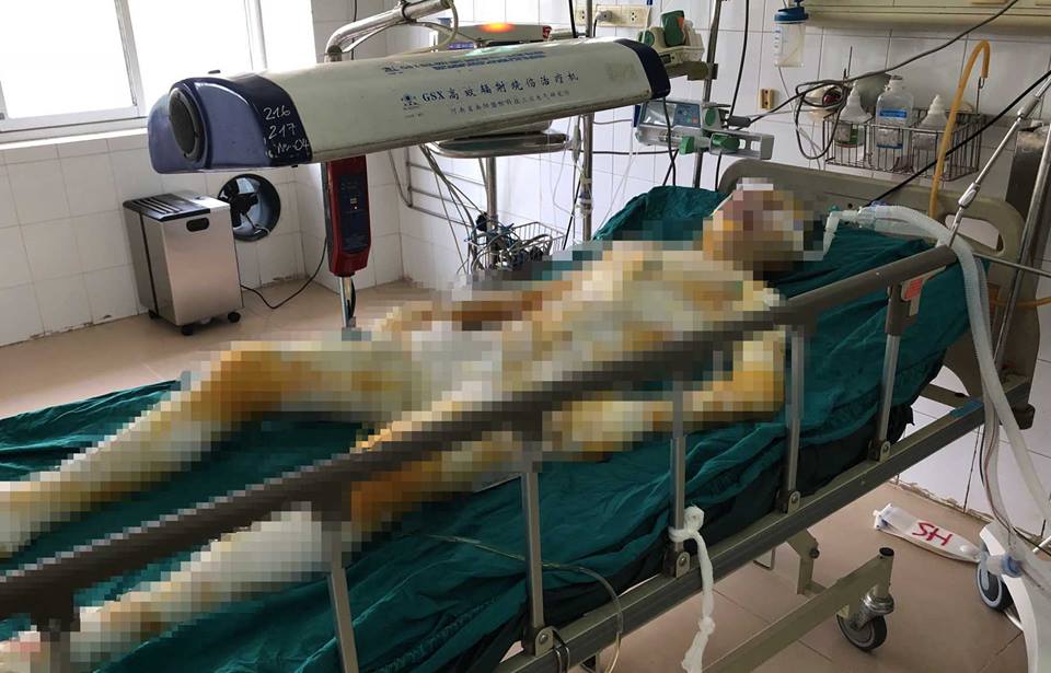 Ngay sau đó, H. được chuyển xuống Viện Bỏng Quốc gia, mức độ bỏng toàn thân là 92%, cơ hội sống rất mong manh.
