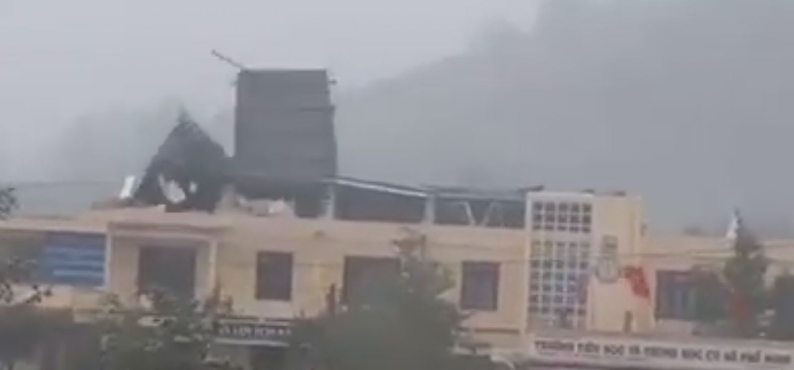 Bão kinh hoàng đã tốc hết mái tôn ngôi trường.