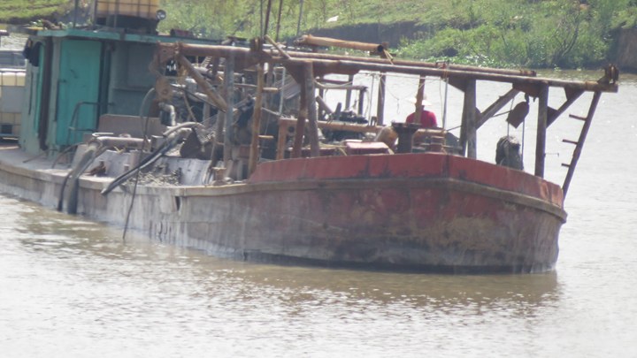 Ghi nhận của PV, công nhân lái tàu ra dòng sông khi đến địa điểm hút cát thì thả neo và hạ chõ xuống đáy sông, mỗi chõ dài hơn 10m, bằng ống thép cỡ lớn. Cứ hút cho đến khi đầy khoang tàu, tuần tự hết tàu này đến tàu khác. Khi tàu đầy cát thì chuyển đến bãi tập kết để bán. Thời gian một công đoạn như thế mất khoảng 4 tiếng.