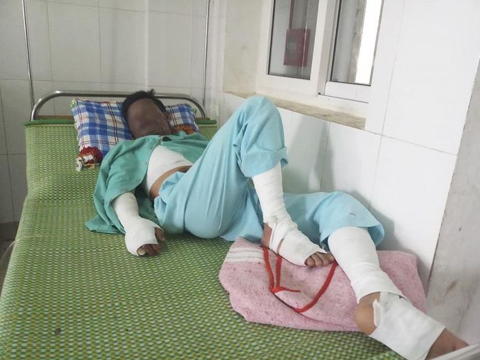 Theo Khoa ngoại chấn thương bỏng, Bệnh viện Đa khoa tỉnh Quảng Trị, nạn nhân nhập viện trong tình trạng đa vết thương vùng mặt, ngực, bụng, bỏng 30% độ I, II, mặt với cổ bỏng tia lửa điện, tay chân hai bên do bỏng nước sôi...