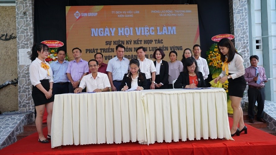 Đại diện Sun Group, bà Trần Thị Hoa Xim – Phó Chủ tịch, Tổng Giám đốc Sun Group Vùng Miền Nam cho biết, kể từ khi có mặt tại Phú Quốc vào năm 2013, đến nay Sun Group có hơn 2000 lao động trực tiếp, và hàng chục ngàn lao động làm việc tại các công ty xây dựng, đang xây dựng những công trình của Sun Group tại đảo ngọc Phú Quốc. Trong 1-3 năm tới, Sun Group sẽ tiếp tục phát triển những công trình lớn tại Phú Quốc, với nhu cầu tuyển dụng thêm hàng nghìn lao động.