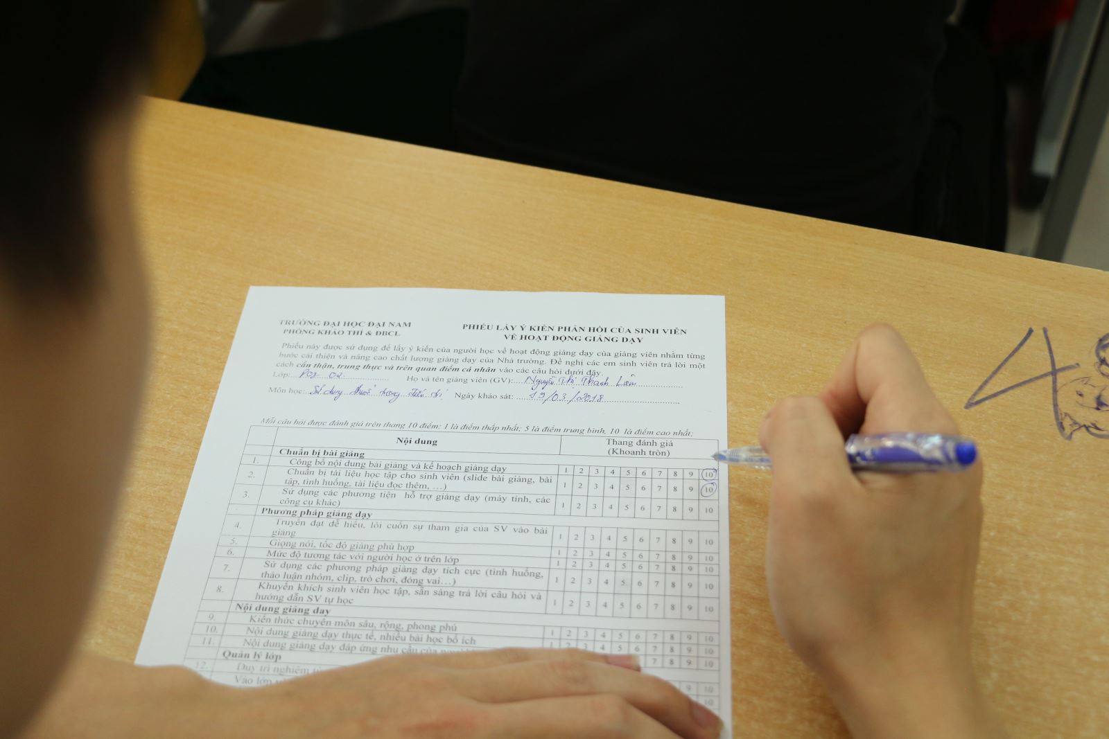 Với thang điểm 10 tương ứng với mức độ đánh giá, giảng viên được đánh giá với các tiêu chí như chuẩn bị bài giảng (tài liệu, phương tiện giảng dạy,…); phương pháp giảng dạy (mức độ tương tác, sử dụng công cụ giảng dạy tích cực,…); nội dung giảng dạy (kiến thức chuyên môn, nội dung giảng dạy thực tiễn,…); quản trị lớp (giảng dạy nghiêm túc, thời gian lên lớp,…); đánh giá chung về mức độ đáp ứng của môn học với kỳ vọng của người học.